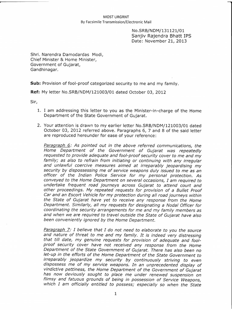 Letter From Sanjiv Bhatt Ips To Narendra Modi Ndm Security 131121 Narendra Modi Government Of India - 8,379 likes · 22 talking about this.